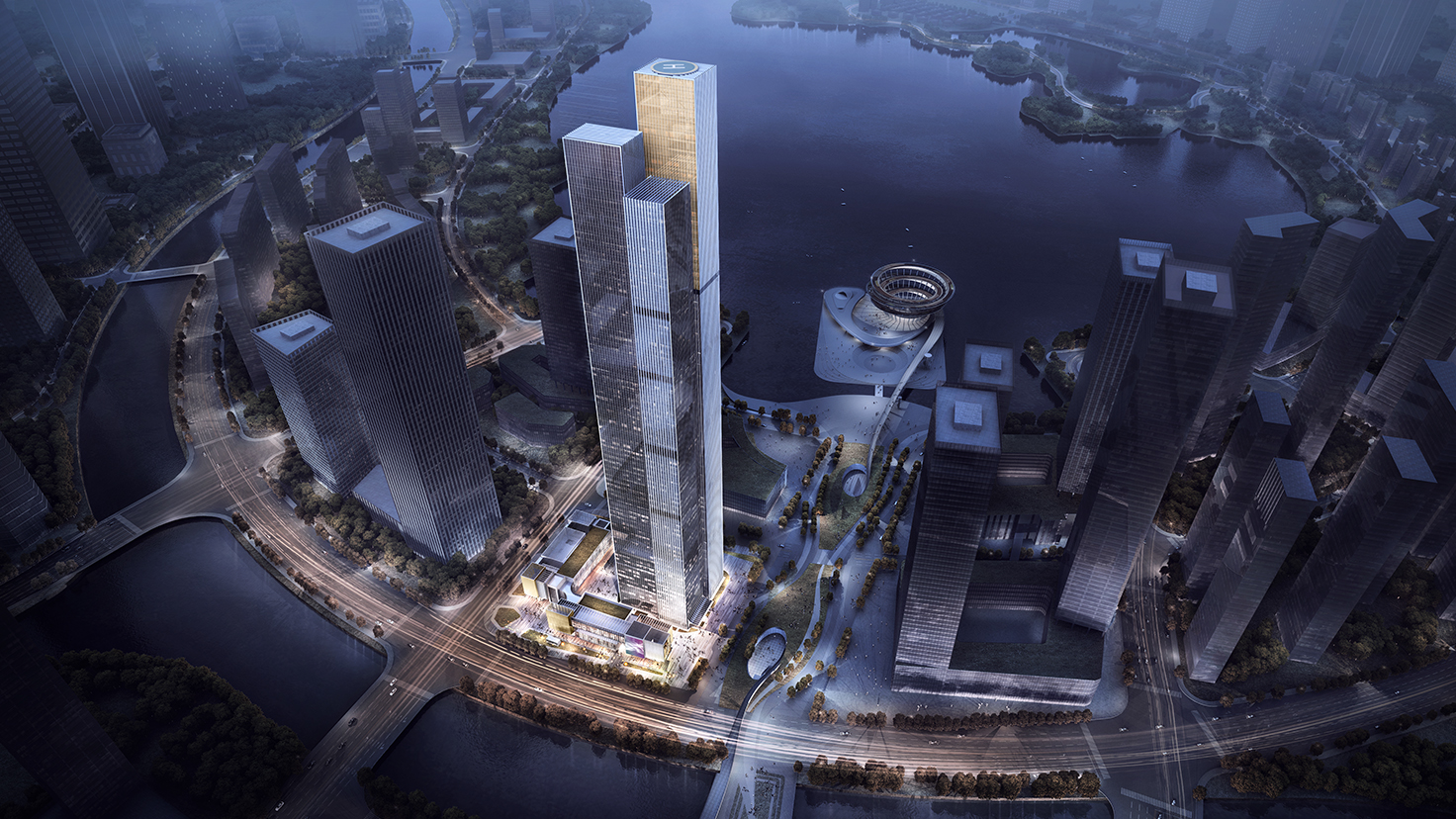 設(shè)計背景:長沙金茂大廈(F-13地塊超高層項目)湖南省長沙市湘江新區(qū)梅溪湖國際新城,濱湖CBD核心區(qū)域,片區(qū)景觀中軸線的東起點。湖南省省會長沙是國家綜合配套改革試驗區(qū)之一,國家十二五規(guī)劃確定的重點開發(fā)區(qū)域,湘江新區(qū)是中部第一個國家級新區(qū),是實施國家區(qū)域發(fā)展總體戰(zhàn)略和長江經(jīng)濟(jì)帶重大國家戰(zhàn)略的重要舉措,本案超高層項目將打造梅溪湖新城所規(guī)劃的制高點,成為該區(qū)域內(nèi)的地標(biāo)性建筑。