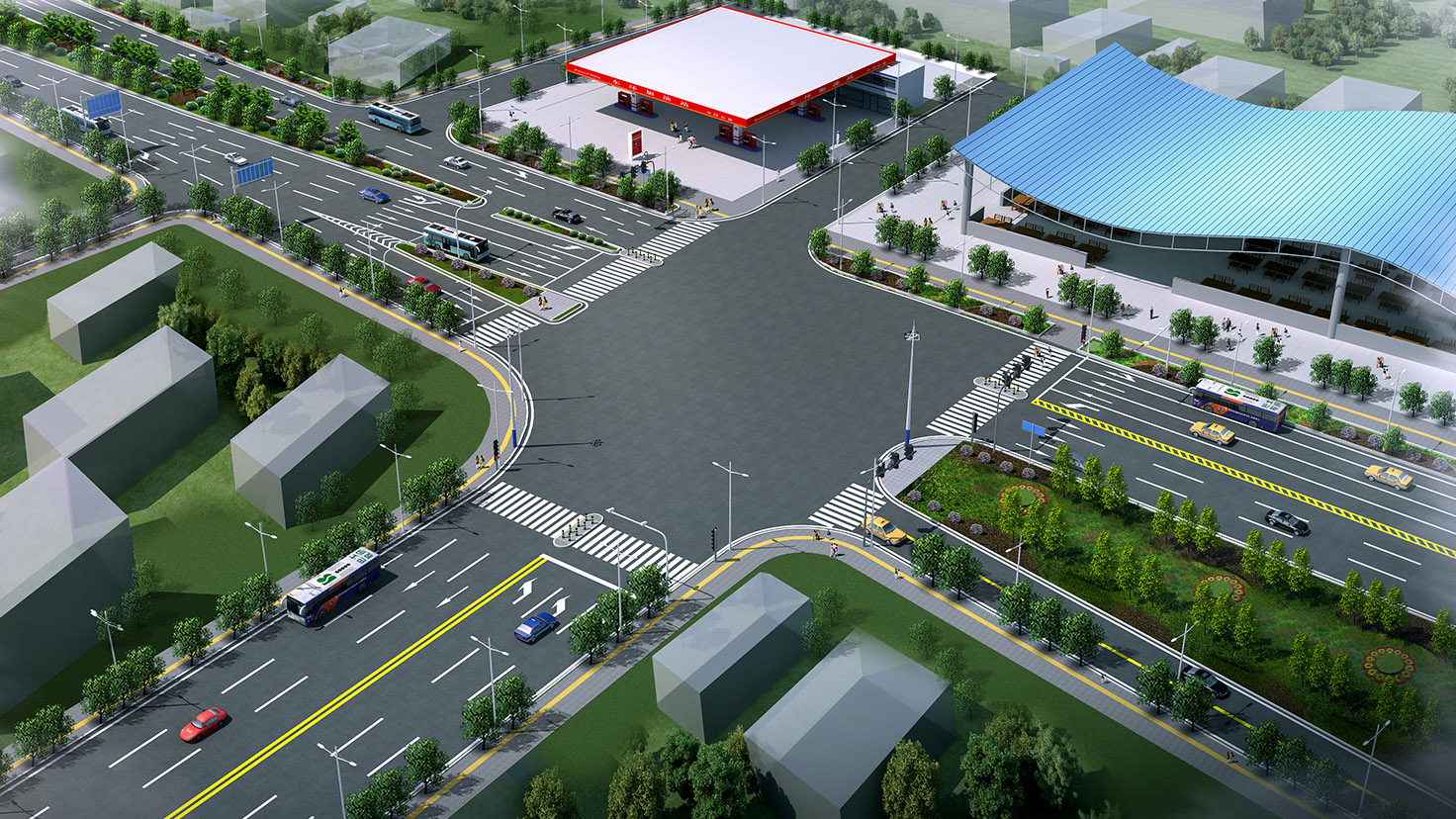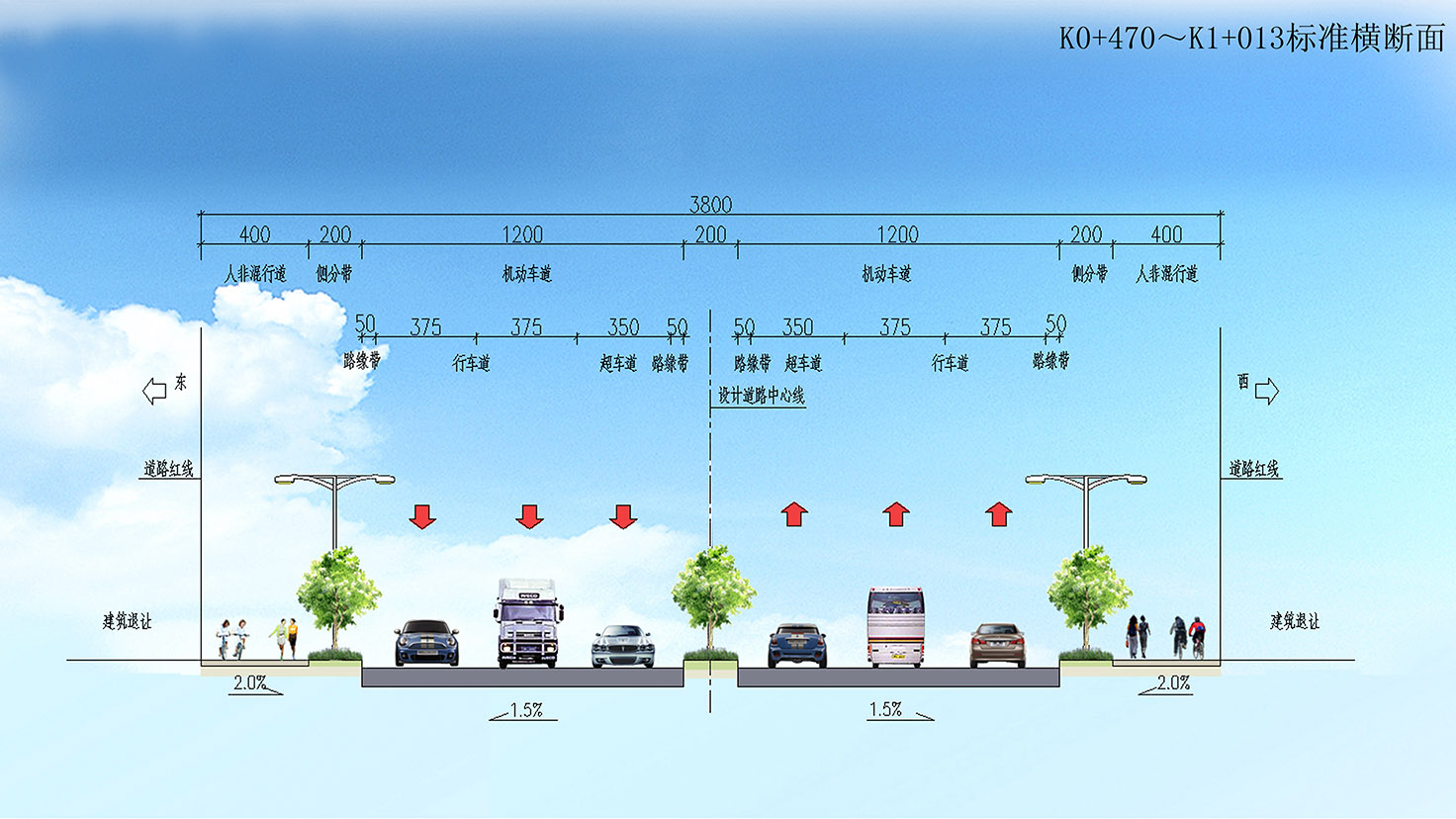 項目規(guī)模:城市主干道,設(shè)計速度50km/h,路寬60m,總長3.6Km。