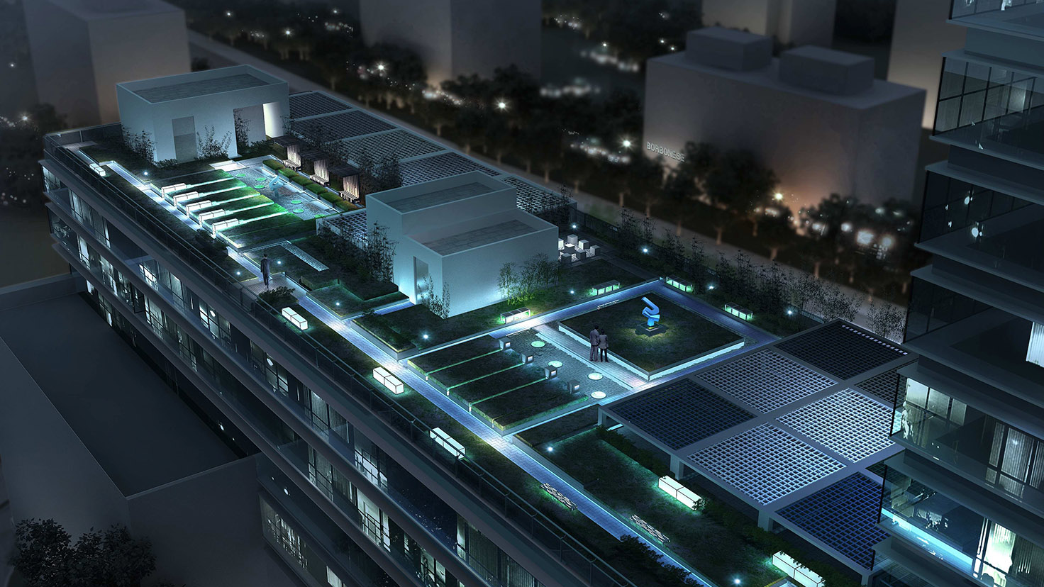 項(xiàng)目規(guī)模:外環(huán)境9612㎡、屋頂花園3192㎡