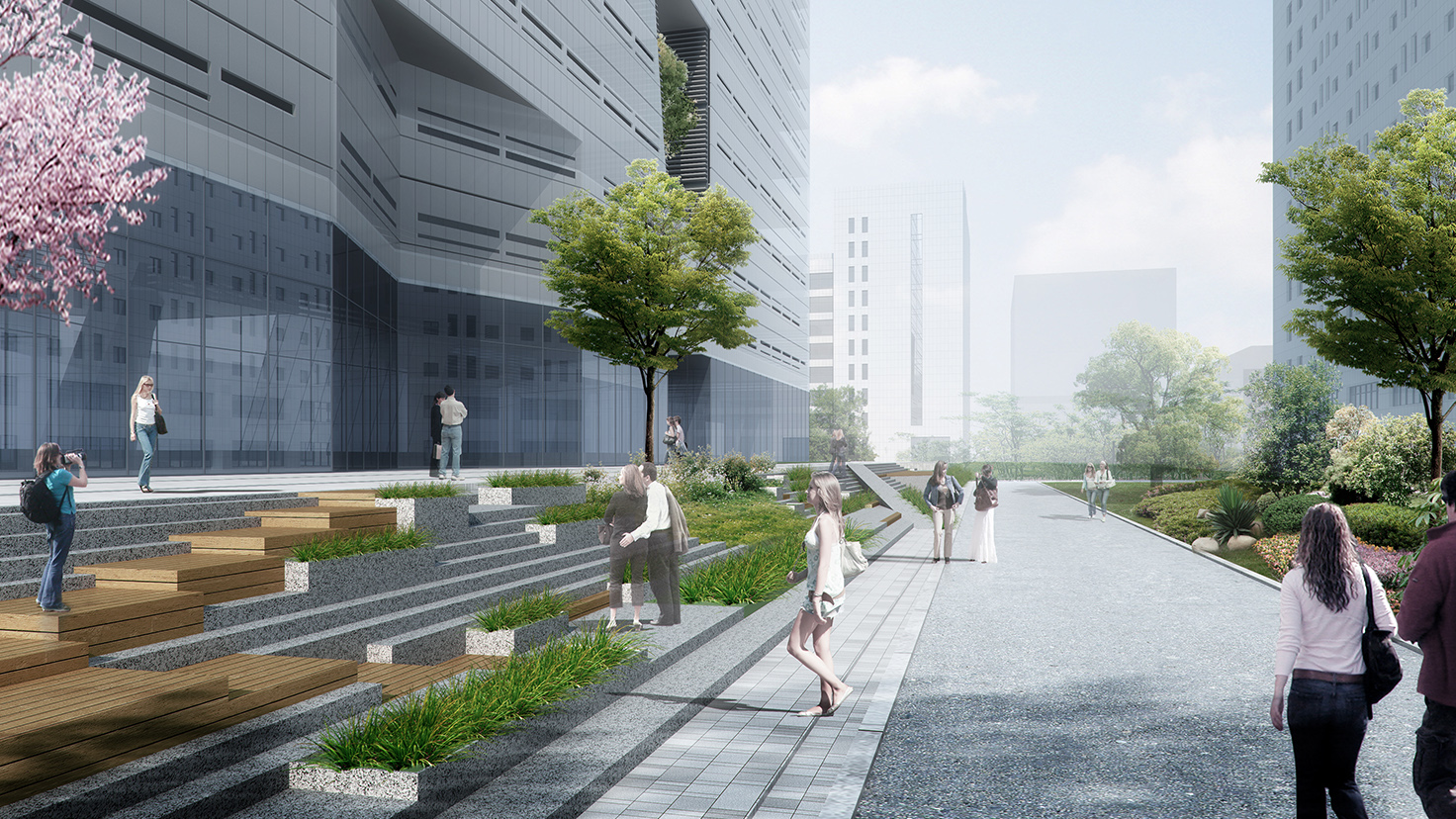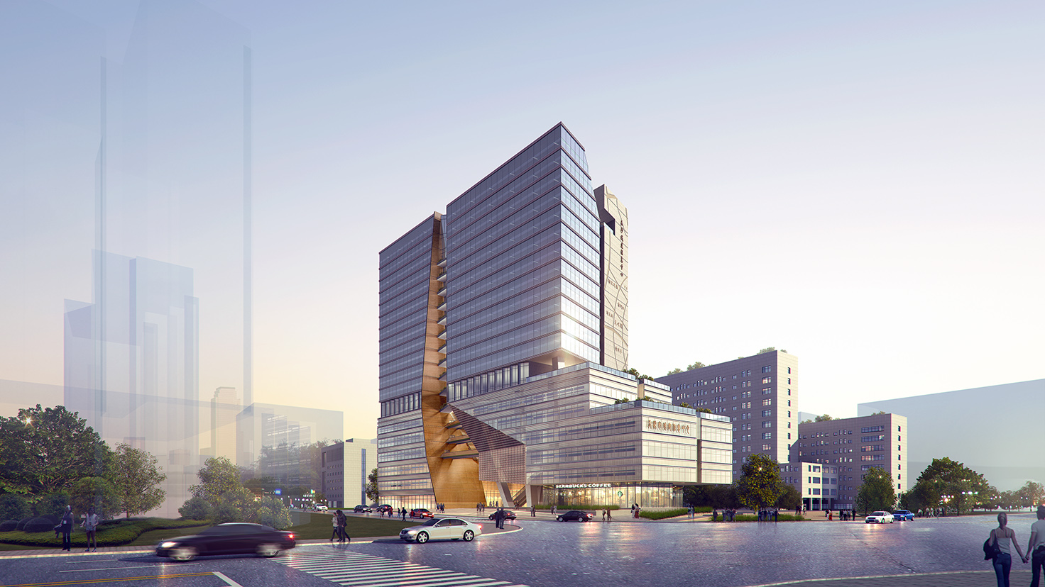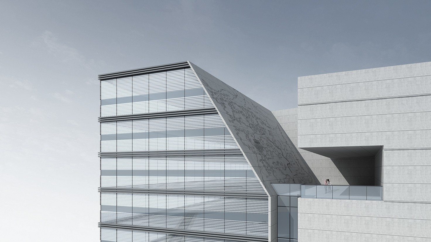 設(shè)計背景:一條湘江橫貫古今,見證了長沙城市建設(shè)的發(fā)展。城建信息中心整體造型猶如砌筑的城市,歷史的長河---湘江穿行而過,將建筑立面從中劈開,成為建筑最精彩的部分,城建史華麗的篇章從此處展開。 新時代的城建信息中心將回歸服務(wù)市民的文化性本質(zhì),成為一個集查閱、展覽、休閑和存檔功能于一體的多功能建筑,一個開放親民的城市文化會客廳。 項目緊鄰公共資源交易中心和工務(wù)局,同為市政府辦公用地。新建成的城建信息中心可以定性為一個充滿多樣性、開放度、包容性和人文館關(guān)懷的城市休閑公園融入其中,串聯(lián)起周邊零散的休閑場所,成為城市重要的公共文化建筑。